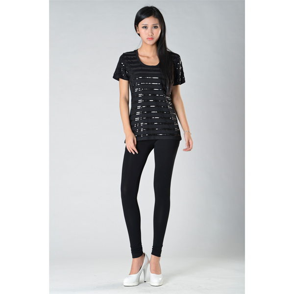 描述:珠片短袖剪裁能拉長身材比例,還可以上衣束進褲子里,提高腰線和修長的腿線。