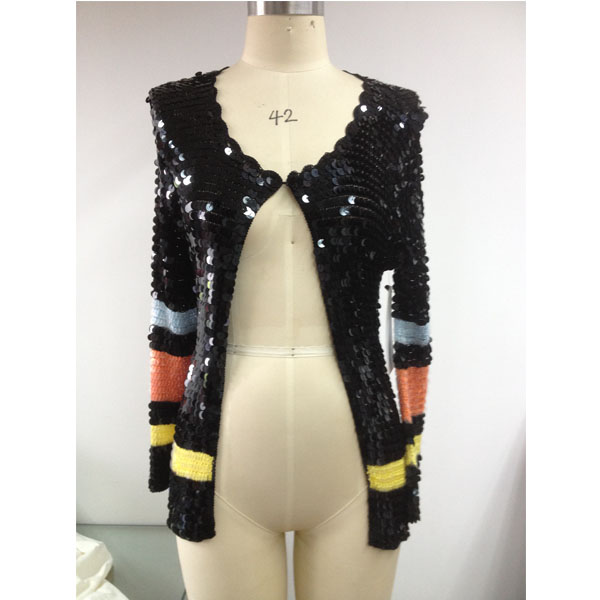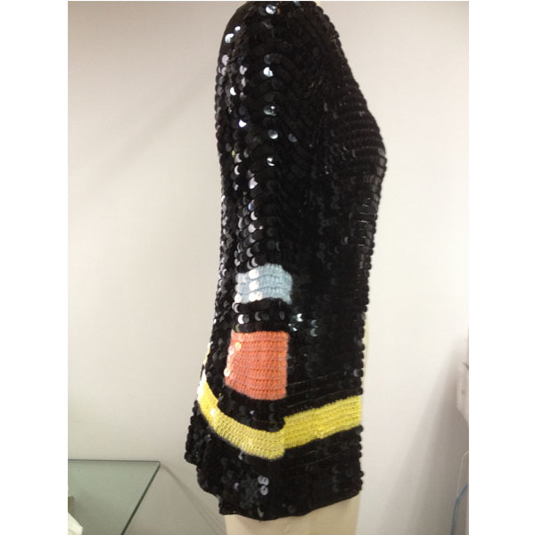產(chǎn)品號(hào):T001-3珠片上衣服裝加工 可選顏色:圖片色 可選尺碼:SX、S、M、L 適合季節(jié):秋季 風(fēng)格:only 描述:無數(shù)黑色的珠片連接而成,猶如漫天閃耀的繁星,閃閃發(fā)光,讓你成為人群中亮眼的一抹! |